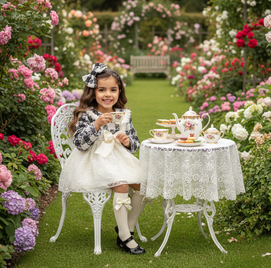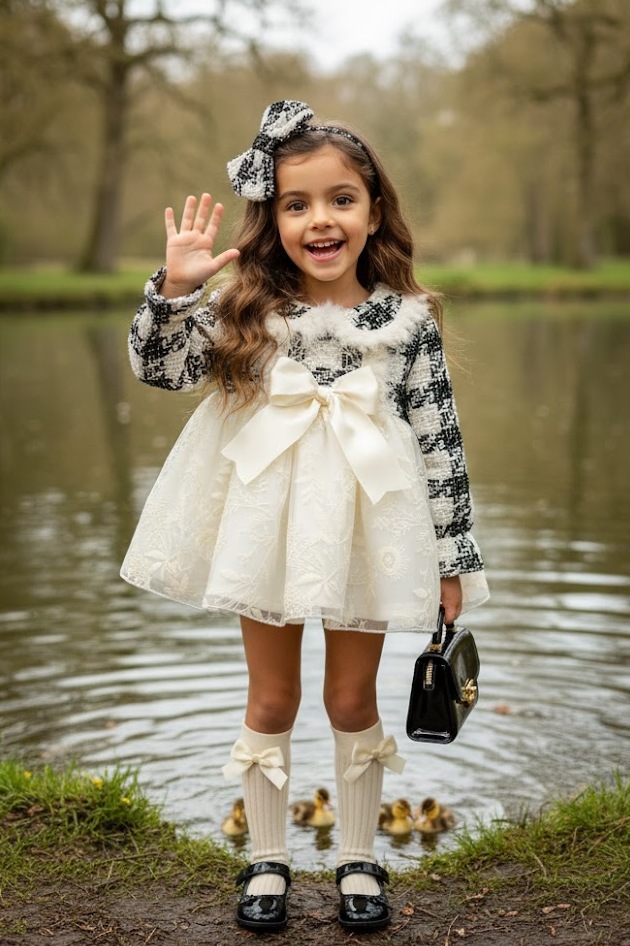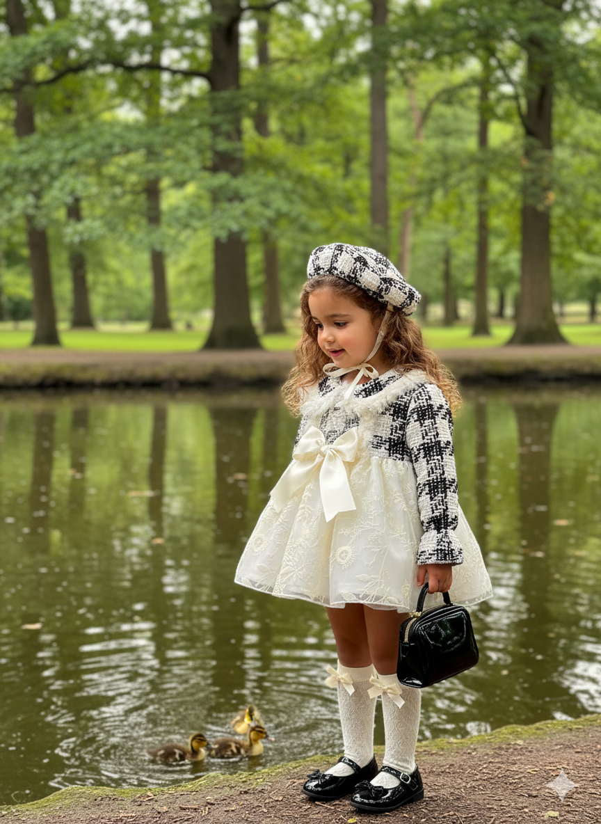 IN25-08 VESTIDO TERCIOPELO MARFIL CON SMOCK CORAZONES ROJO
