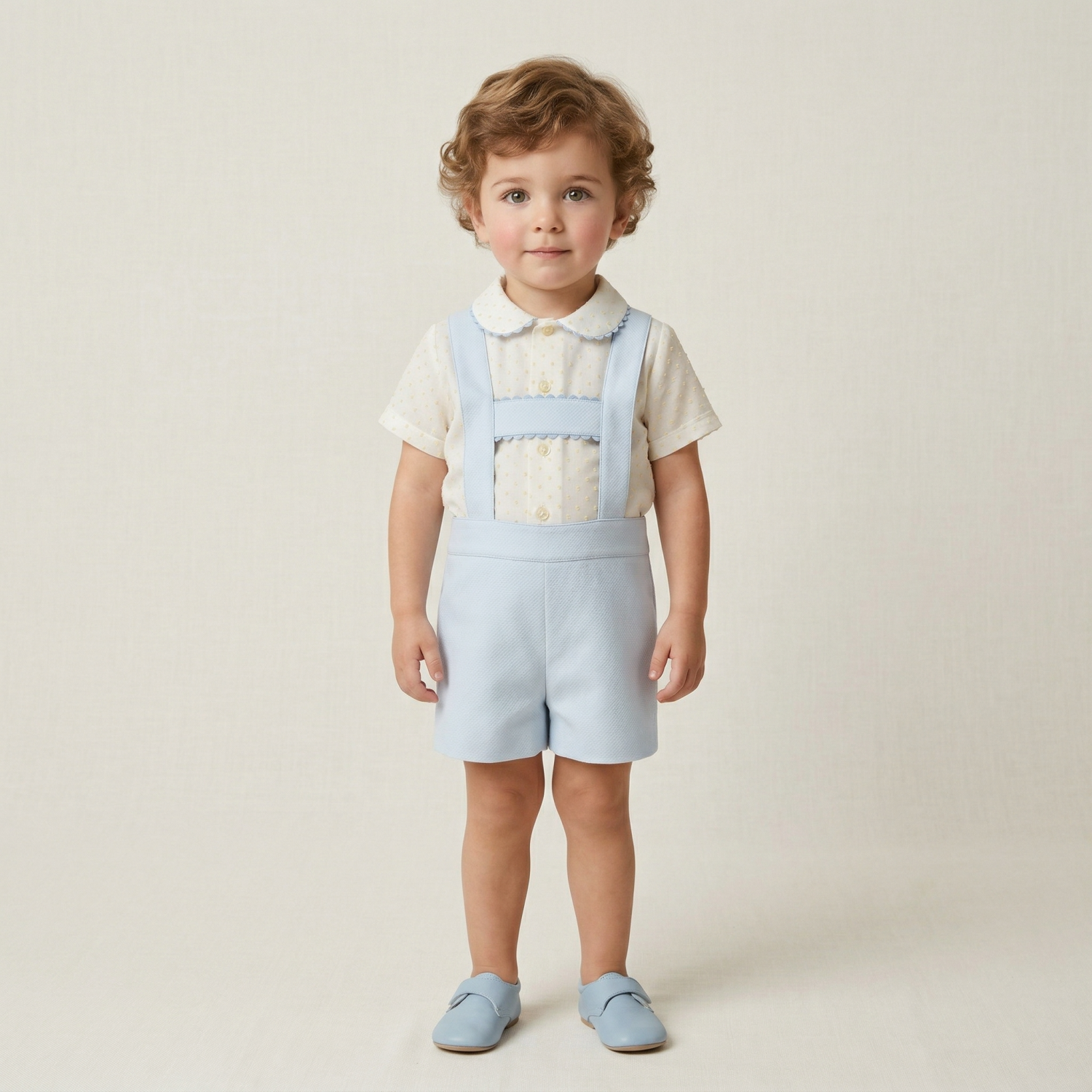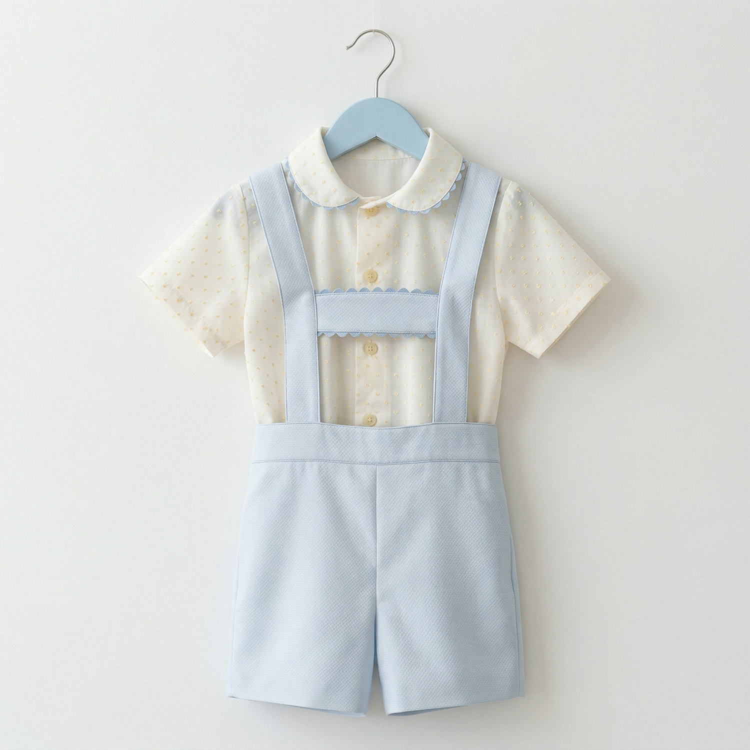 VE25-11 BOY SUIT BABY BLUE PIQUE AND LEMON DOT PLUMETTI SHIRT