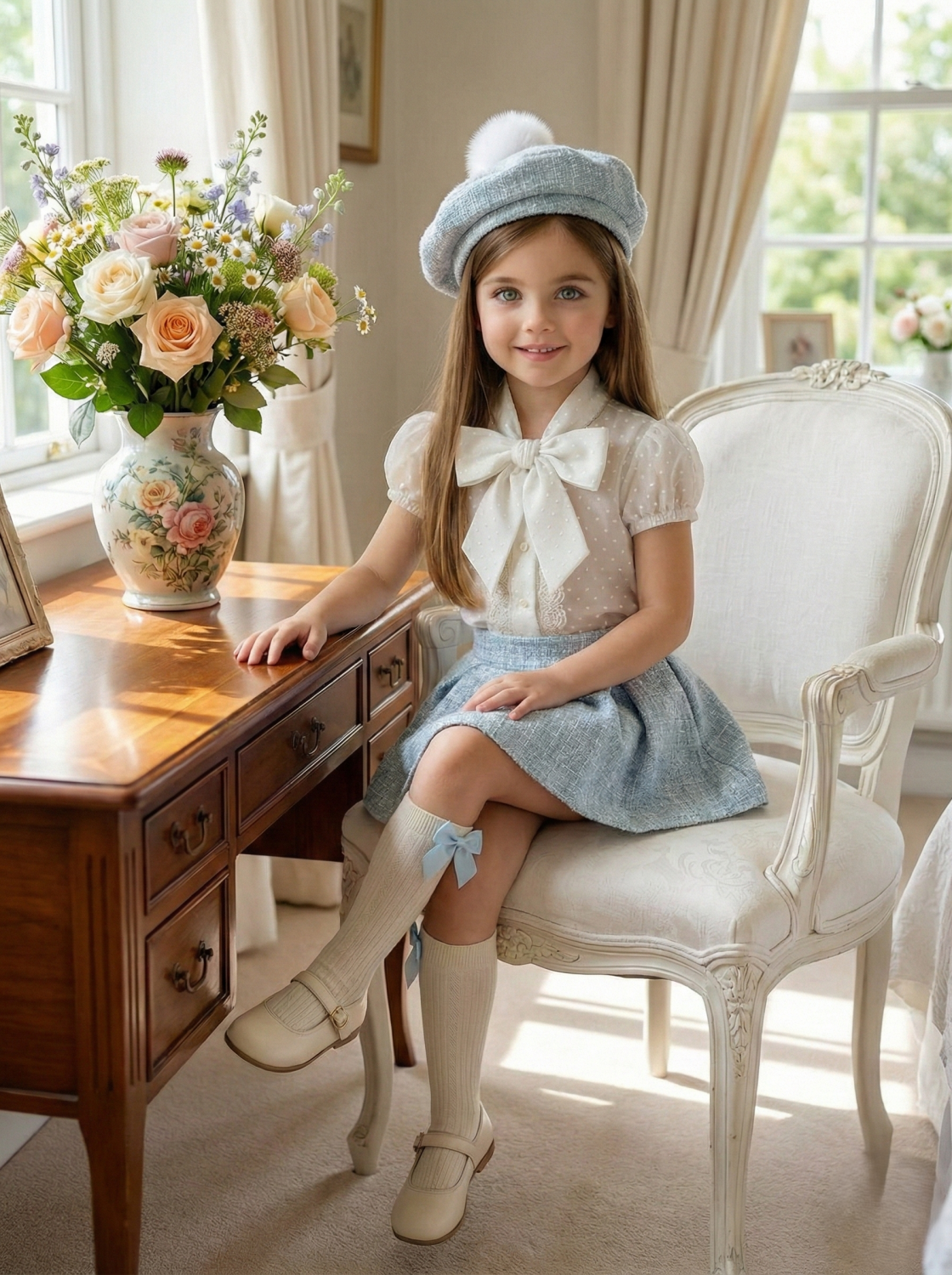 BABY BLUE DRESS BONNET | VE23-07