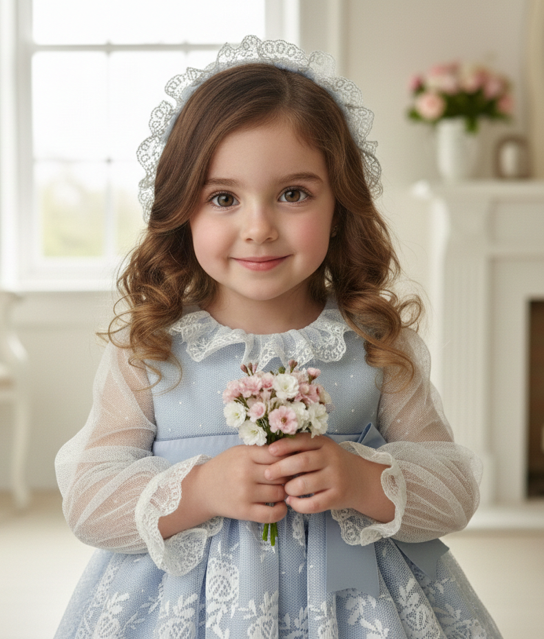 BABY BLUE DRESS BONNET | VE23-07