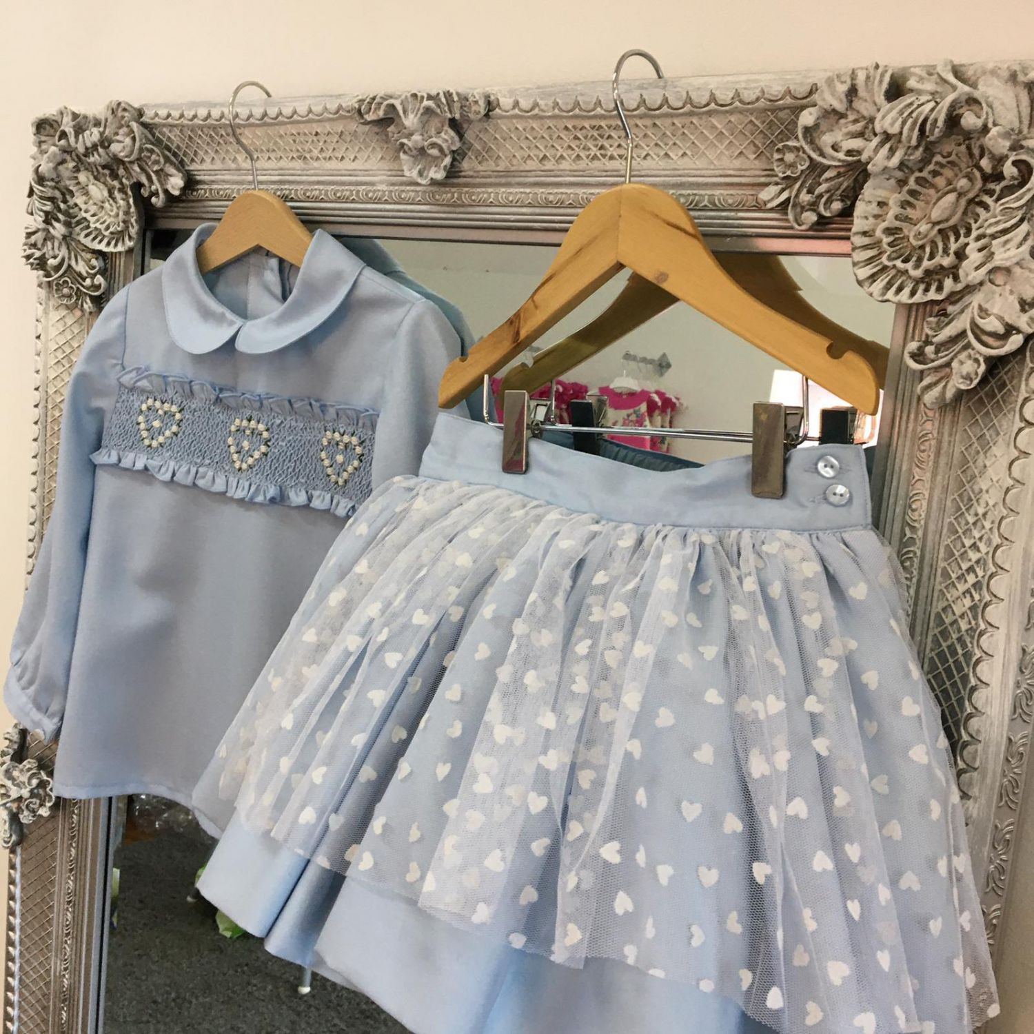 FALDA Y BLUSA SMOCK CORAZONES GE 697