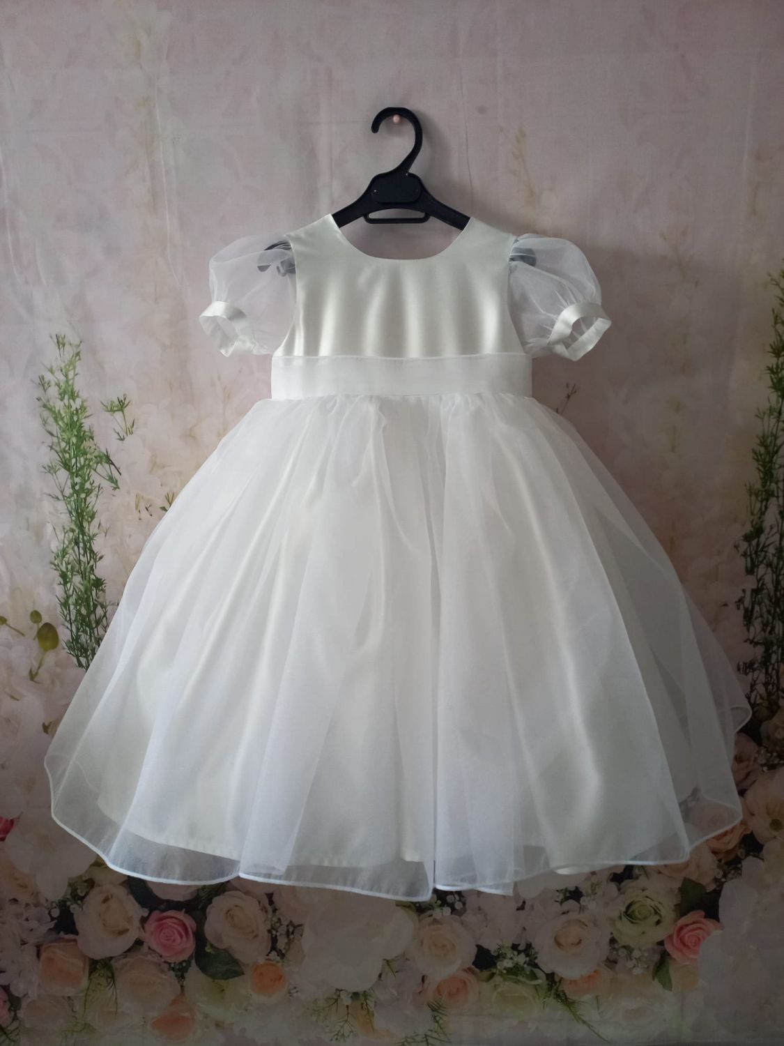 GEVE22-29 CEREMONIA RASO blanco FALDA ORGANZA BLANCA MANGA ORGANZA