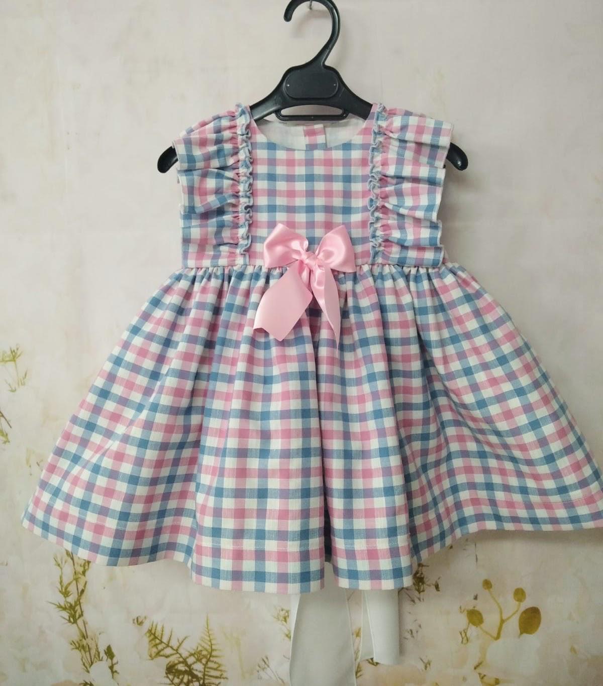 GEVE25-04 VESTIDO CUADRITOS ROSA Y CELESTE