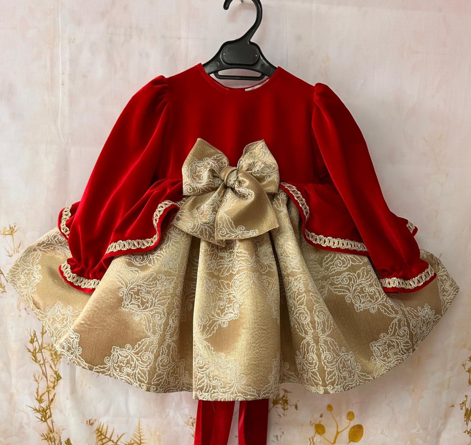 GEIN25-07 VESTIDO NAVIDAD TERCIOPELO ROJO Y TELA DORADA