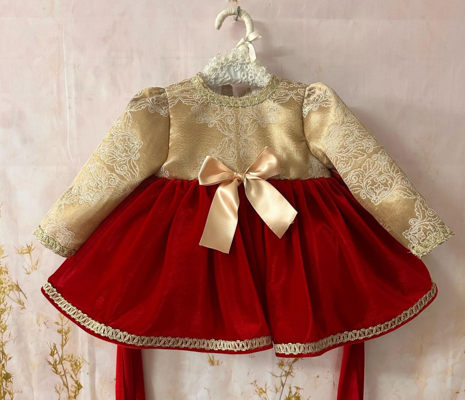 GEIN25-08 VESTIDO NAVIDAD CUERPO DORADO Y FALDA TERCIOPELO ROJO