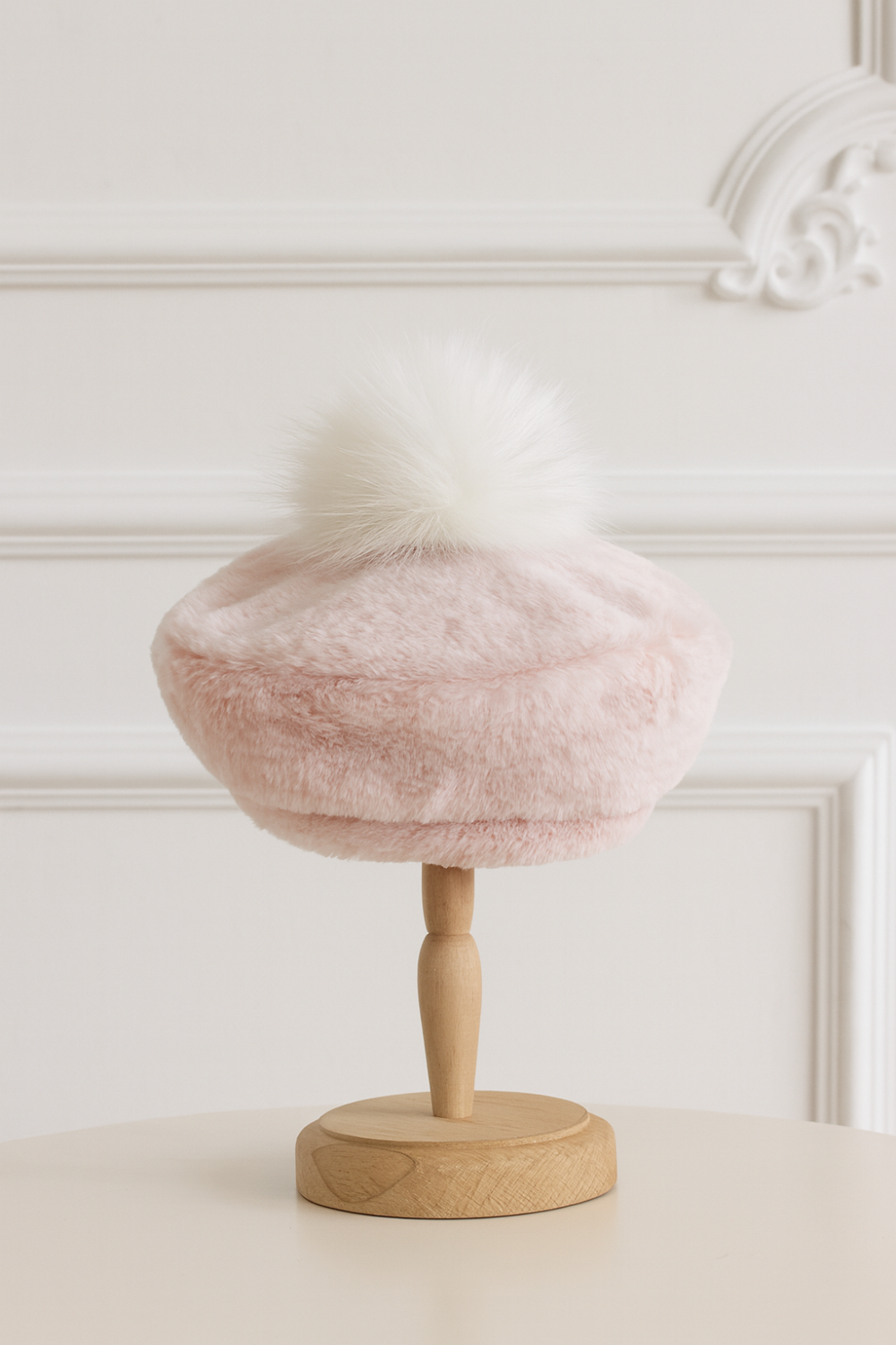 IN25-22 BOINA PELO OSITA ROSA CON POMPON CREMA