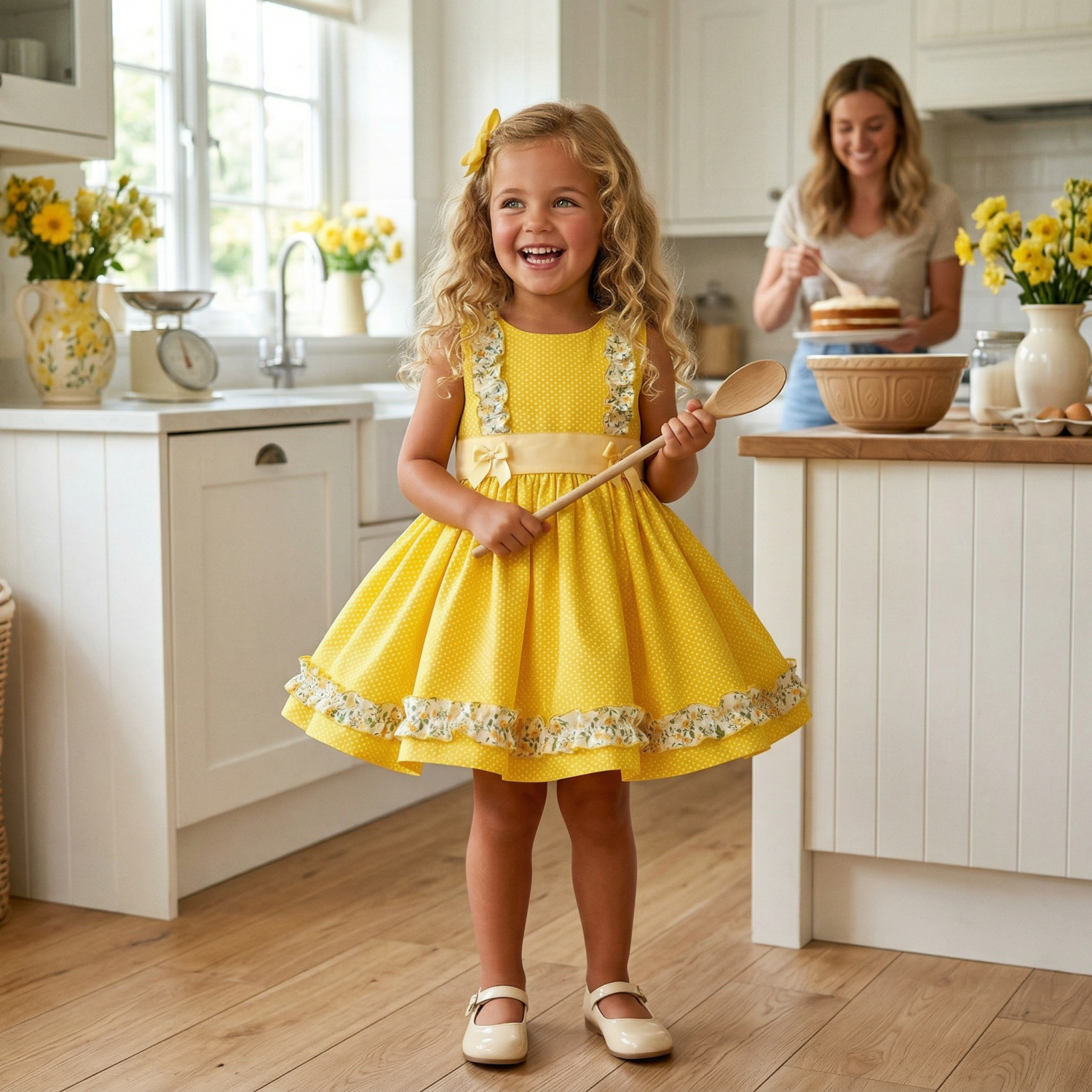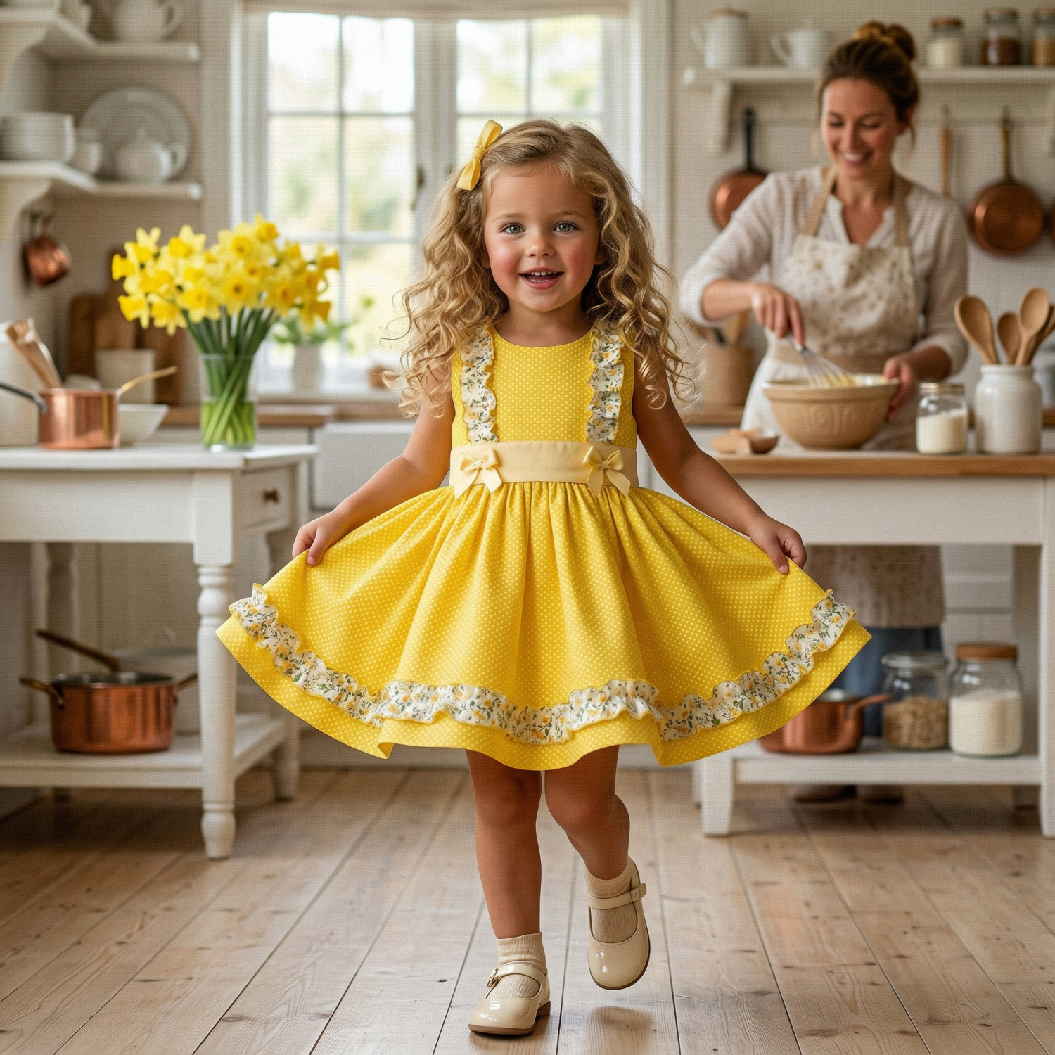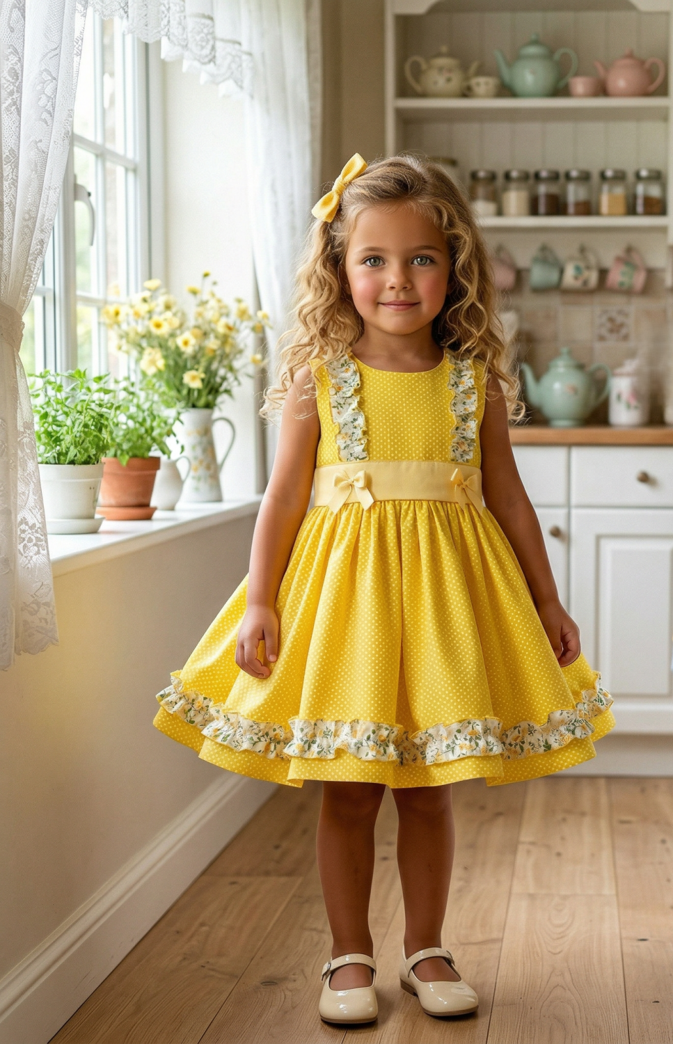 VE26-25 VESTIDO LUNARES AMARILLOS