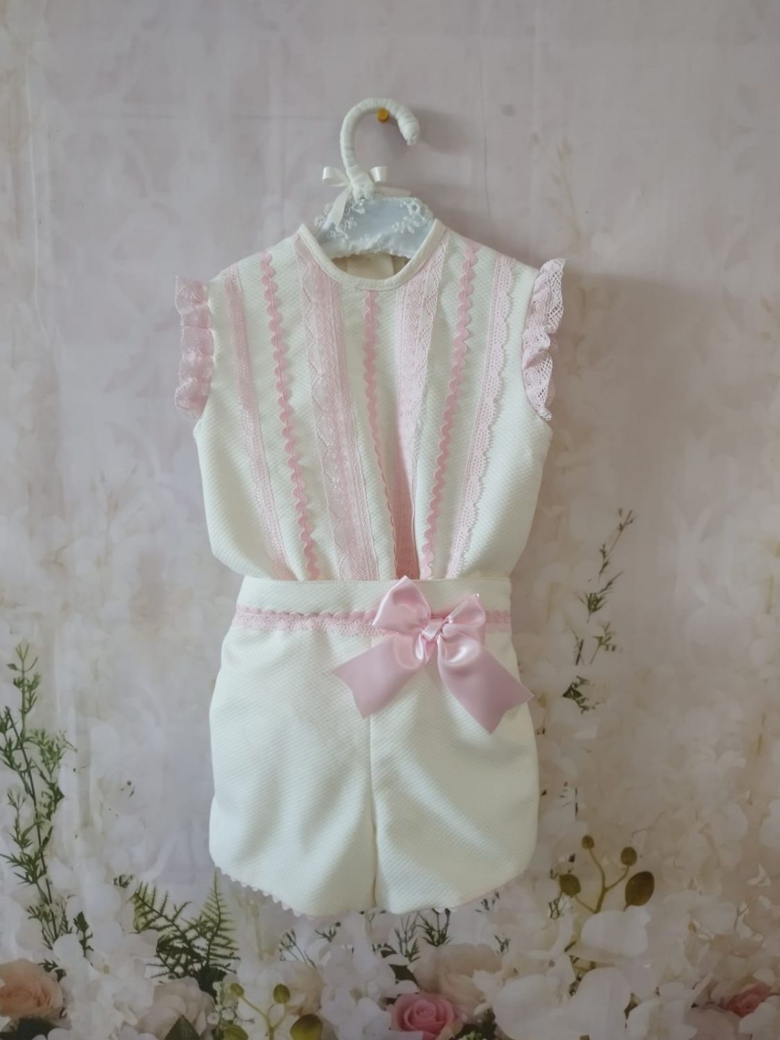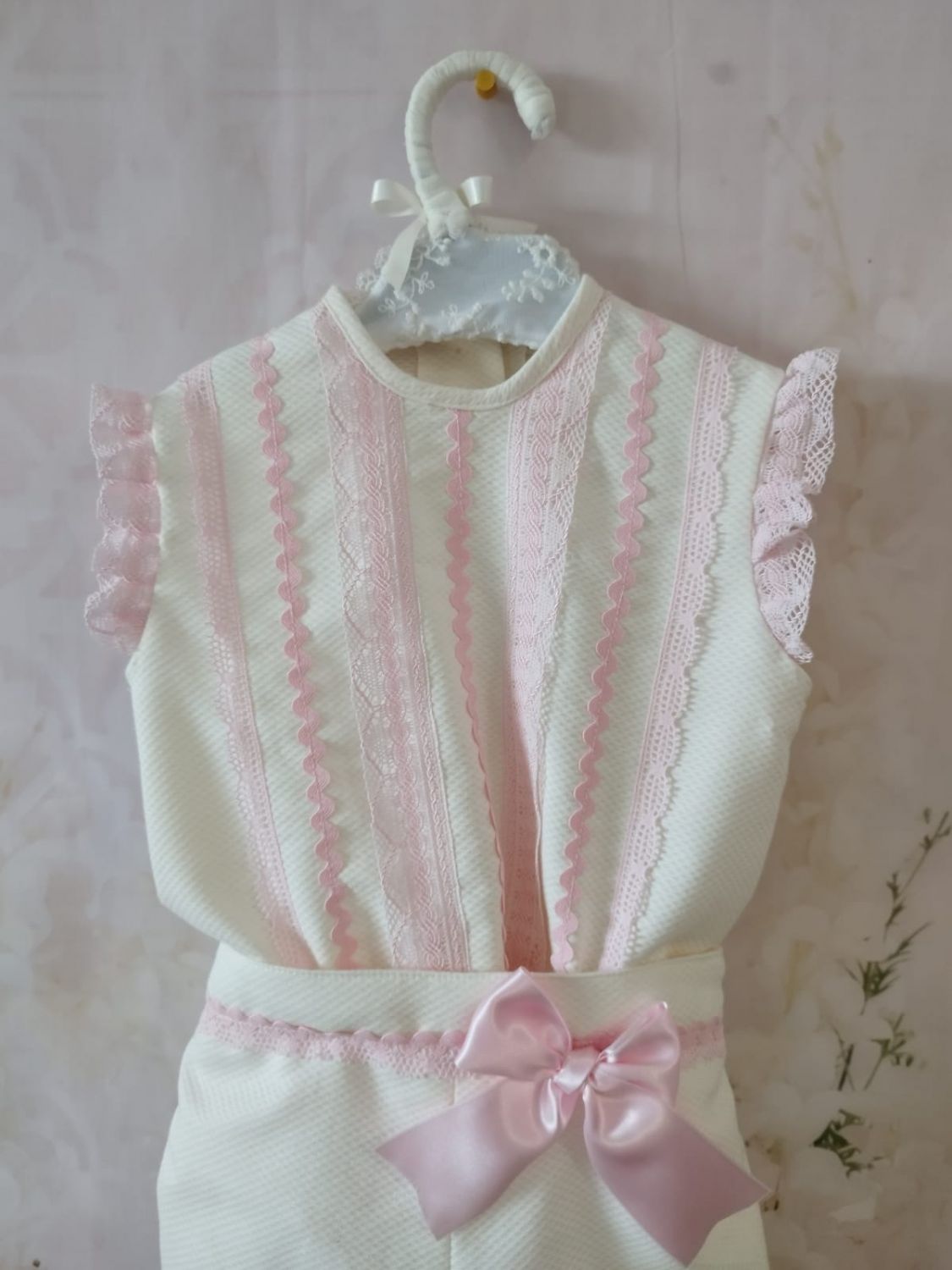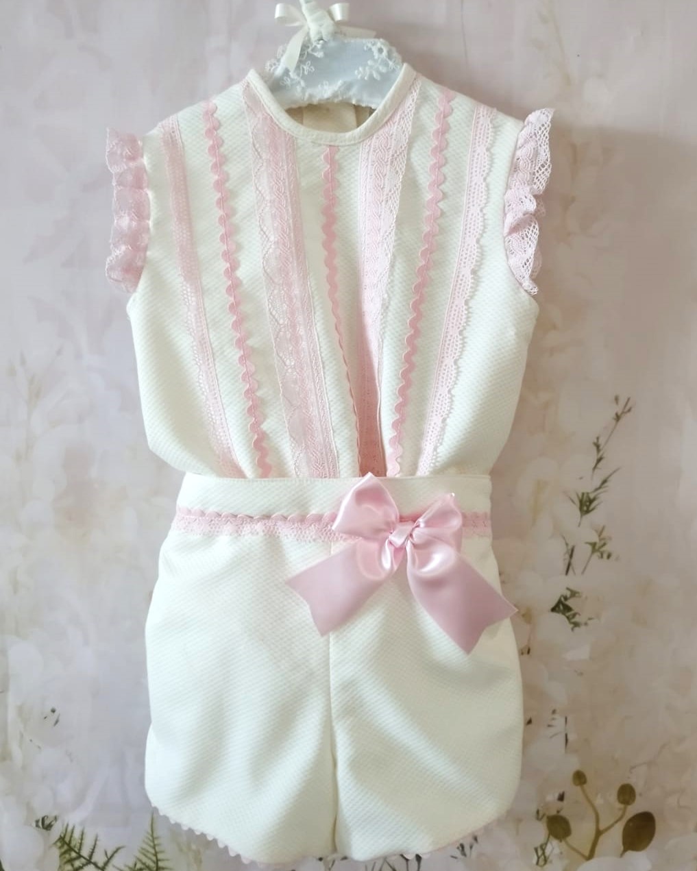 Conjunto de bebé rosa con lazo rosa